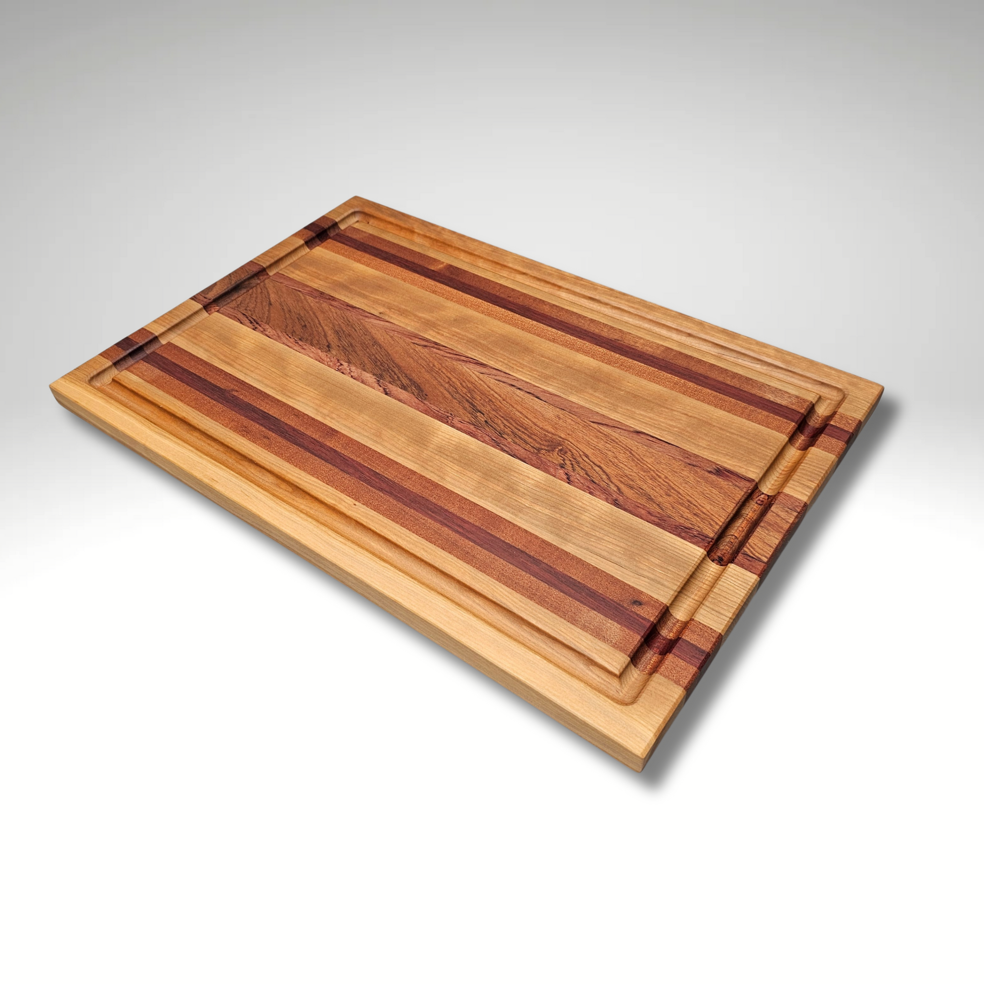 Effortlessly chop and prepare all your favorite foods with our premium cutting board. Crafted from high-quality cherry wood with a stylish exotic wood accents, it also features a convenient juice groove to keep your kitchen clean. Upgrade your cooking experience today!